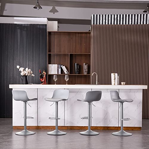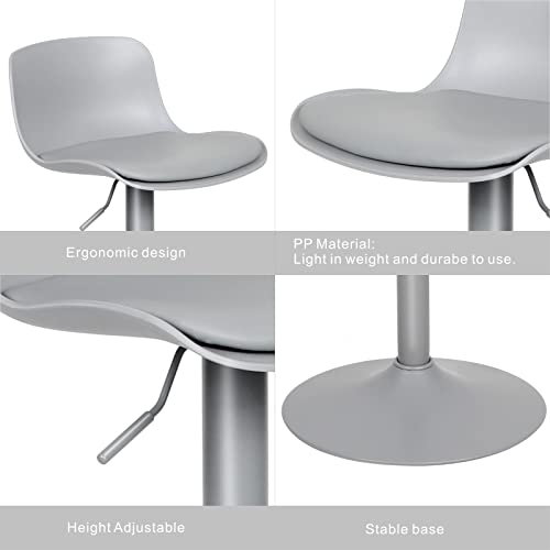 Kidol & Shellder Sgabelli da Bar Sedie Cucina Set di 2 Grigio Cuscino del Sedile, Schienale Girevole Regolabile in Altezza, Metallo in Pelle PU, Bancone da Cucina per Bistrot per la Casa...