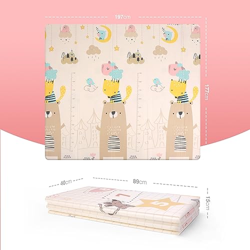 TAPPETO GATTONAMENTO PIEGHEVOLE E PORTATILE: Questo tappeto salvaspazio giochi per bambini può essere ripiegato fino a 89 x 40 x 15 cm per riporlo con facilità. È inoltre leggero e adatto per i viaggi, picnic al parco, o qualsiasi attività all'aperto