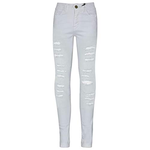 A2Z 4 Kids Bambini Ragazze Denim Strappato Jeans Bianco Comfort Magro - Girls Jeans JN28 White_7-8
