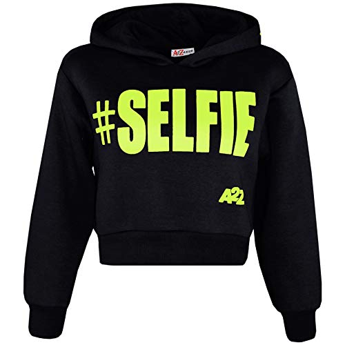 A2Z 4 Kids Bambini Ragazze Ragazzi Tuta Progettista Nero & Neon Verde #Selfie Stampare - T.S Crop #Selfie Black Neon Green_11-