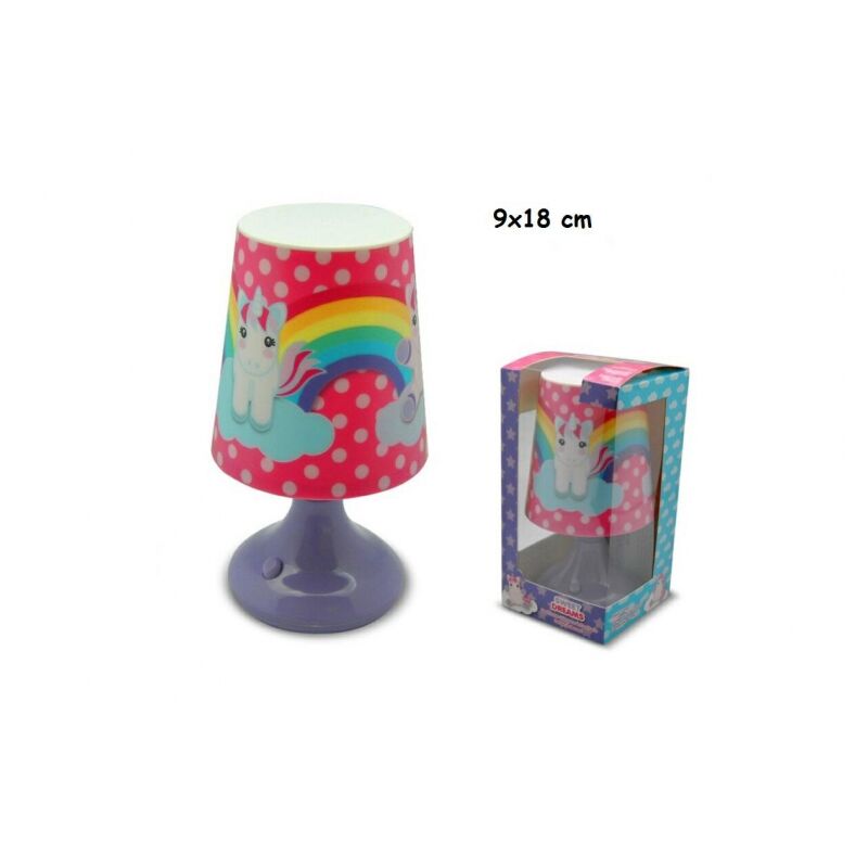 Una lampada da comodino di dimensioni ridotte per illuminare con simpatia e calore la camera delle nostre bimbe. Questa lampada con il dolcissimo Unicorno è realizzata in polipropilene in modo da ridurre al massimo i danneggiamenti in caso di cadute accidentali ed ha inclusa la luce led. Funziona con 3 batterie AA da 1,5 V. Funziona con pulsante On/Off alla base della lampada. In polipropilene lampadina LED inclusa disegno Unicorno