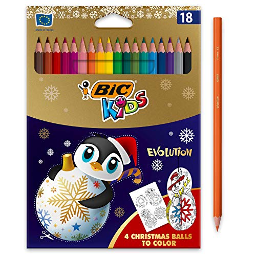BIC Kids - Matite colorate Evolution Ecolutions, edizione di Natale, colori assortiti, confezione da 18