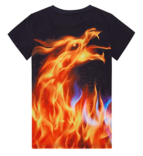 Kids4ever Ragazzo Ragazze Tshirt Divertente 3D Drago Colorato Galassia Modello O-Collo Tee Tops Bambini Estate Sport in Esecuzione T Shirts Nero 10-12T