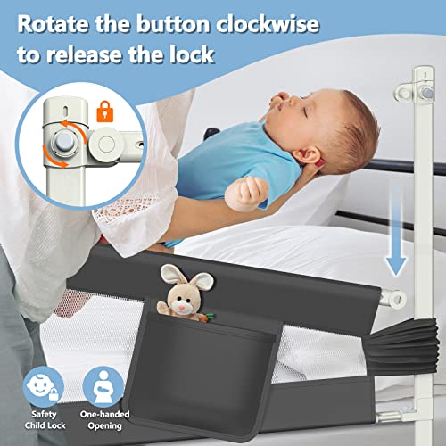 Alta qualità: le sponde del letto sono realizzate in tubo di ferro ispessito, resistente e durevole. Il rivestimento in tessuto della sponda del letto è realizzato in tessuto oxford, che non si strappa facilmente. Il design a rete rende la sponda del letto traspirante e confortevole.