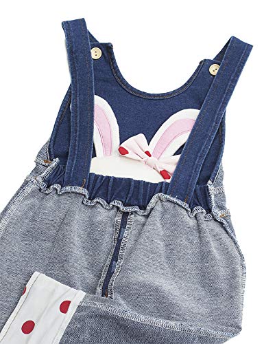 KIDSCOOL SPACE Salopette per Neonate,Tuta in Denim con Decorazioni per Coniglietti con Fiocco in Cartone Animato 3D per Bambini,Blu,12-18 Mesi