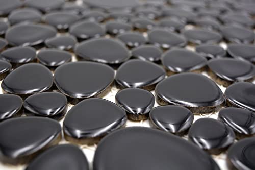 Kieselmosaik Pebbles Ceramica Nero Spots Piatto Doccia Specchio Piastrelle Specchio da Doccia a Specchio MOS12-0302 | 10 tappetini a mosaico
