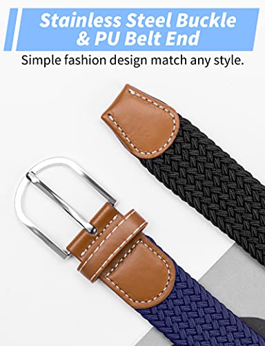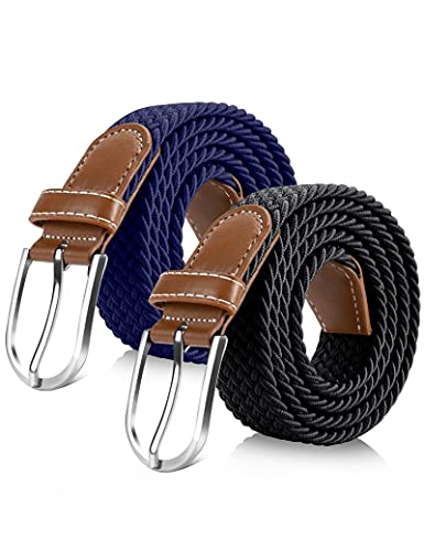 Kiiwah 2pcs Cintura Elastica Intrecciata per Uomo e Donna, Cintura Unisex Non Poroso in Tessuto Elastico Stretch per Uso Quotidiano e Sport (Nero, Blu)