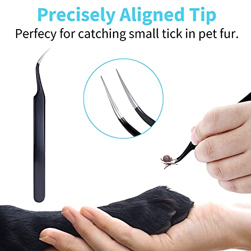 Alta Qualità - le pinzette per zecche sono realizzate in acciaio inossidabile di alta qualità e plastica, resistente e innocua. La superficie liscia farà sentire il tuo animale domestico sicuro e indolore.