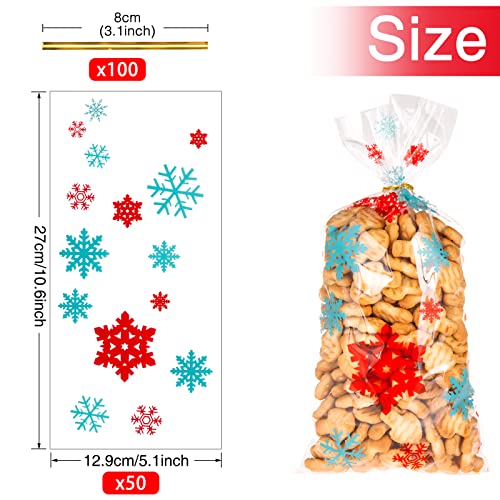 Kiiwah 50 Pezzi Sacchetti Trasparenti Natalizi per Biscotti e Caramelle, Sacchetti Richiudibili Natalizi con Legami di Torsione per Decorazioni per Feste di Natale (Rosso, Verde)