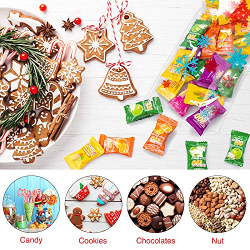 Sicuro e Durevole - Gli bustine trasparenti richiudibili di Natalizie sono realizzati in plastica OPP di alta qualità per alimenti, solida e durevole, non tossica e inodore. Ma per favore NON metterli in forno o microonde.