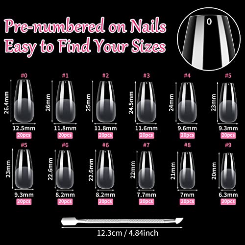 【240 PCS in 10 misure】 - Forniamo 240 tips unghie acrygel a copertura totale in 10 taglie individualmente da 0-9 tra cui scegliere, comodo per scegliere la punta giusta per le unghie, adatta alla maggior parte delle persone.
