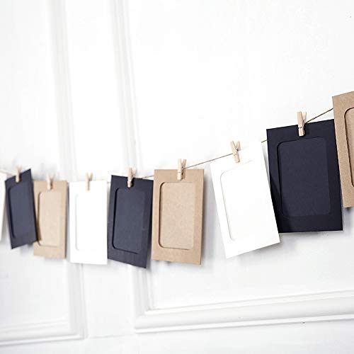 KiKiHong 30 Pezzi Cornice di Carta per Foto DIY Cornice Portafoto Appeso Decorazione con Clip in Legno e Corda di Canapa, 4.5x6 inch