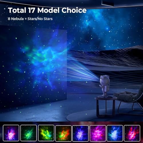 【17 modalità tra cui scegliere】Il proiettore stellare astronauta creerà modelli stellari e nebulose, 8 effetti nebulosi, 1 effetto stella;