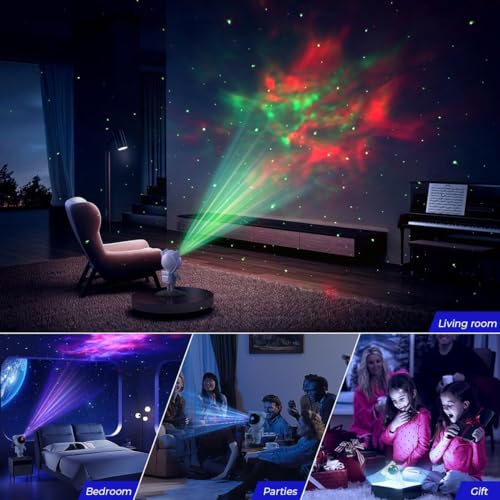 【Versatile for Multiple Scenarios】Con la sua vibrante proiezione ad alta definizione e una portata fino a 5 metri, questo proiettore di luce galassia è perfetto per varie impostazioni. Che si tratti di un appuntamento romantico, relax personale, decorazione della stanza o celebrazione di momenti speciali, si può godere di un affascinante cielo stellato dal comfort della vostra casa.