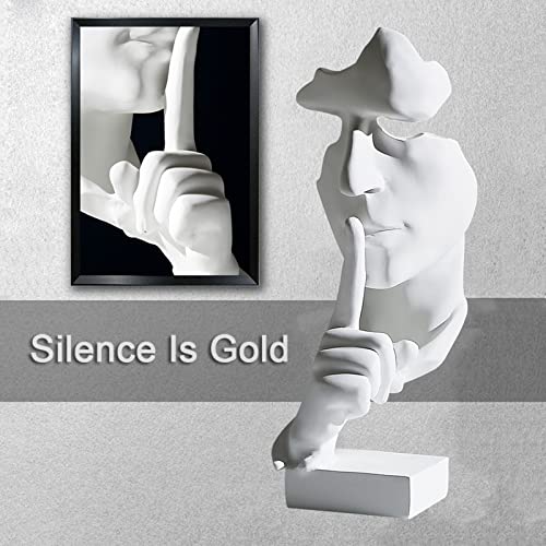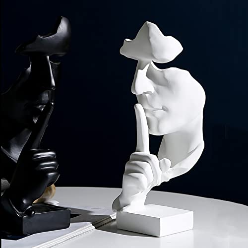 KILCVEM Soprammobili Moderni - Il Silenzio è d'oro - 28 cm Statuette Decorative Casa - Statue di Viso Uomini - Scultura Resina Astratta Moderna Soggiorno Ufficio Creativa Regalo Figurine