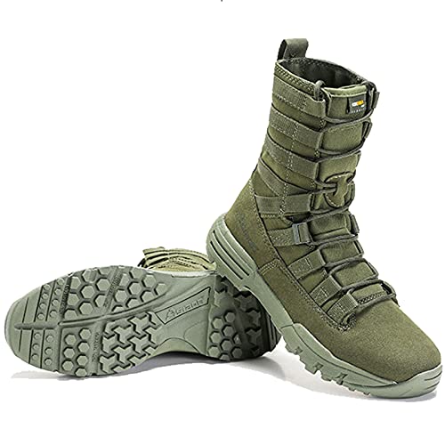 KILCVEM Stivali Tattici Militari da Uomo Stivali da Caccia Impermeabili a Taglio Alto Stivali da Combattimento Traspiranti All'aperto Scarpe da Trekking Antiscivolo - Stringate,Green-44(UK10)