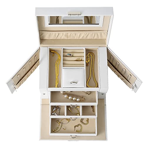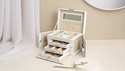 KILHS Cofanetto portagioie gigante specchio orologio scatola scatola anello orecchini scatola regalo serratura (bianco)
