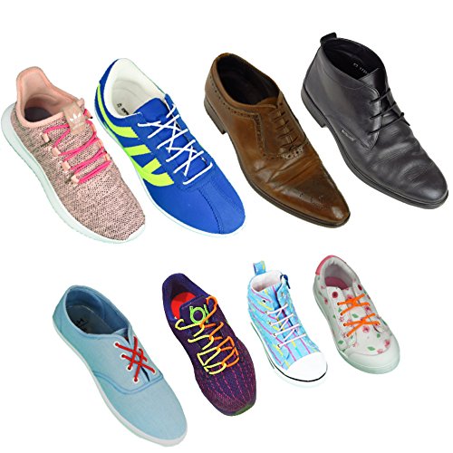 ✔ Adatto a qualsiasi tipo di scarpa: bambini, adulti, atleti, scarpe classiche. Generalmente questo set può legare 2 paia di scarpe per bambini (1 punta per scarpe) o 1 paio di adulti (2 lacci per ogni scarpa). I lacci sono versatili per regolare la vestibilità al comfort previsto in base alla dimensione e al numero di occhielli delle scarpe.