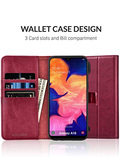 KILINO - Custodia a portafoglio per Galaxy A10, con blocco RFID, antiurto, in pelle di alta qualità, con slot per schede, cavalletto, chiusura magnetica, per Samsung Galaxy A10, colore: bordeaux