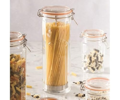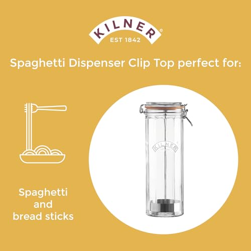 Dispenser SPAGHETTI: il dispenser per spaghetti sfaccettato Kilner è un'innovazione di Kilner per mantenere gli spaghetti freschi più a lungo con una chiusura ermetica e a clip, questa elegante forma di barattolo ha un design sfaccettato distintivo che ricorda un'epoca passata con l'autentico logo in rilievo e contiene un foglio di istruzioni dettagliato all'interno