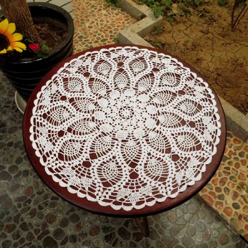Kilofly - Tavolo in pizzo per divano, con ninfea, 50,8 cm, in cotone, colore: bianco, 51 cm