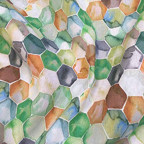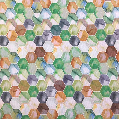 Kt KILOtela - Tessuto arredo stampato al metro - Canvas - 280 cm di larghezza - prezzo per 50 cm | Geometrico, esagoni - Verde, arancione, blu, grigio