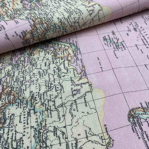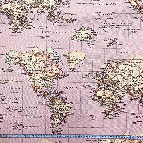 Kt KILOtela - Tessuto Arredo Stampato, Rivestire, Foderare, Divani, Tavolo, Sedia, Letto, Tende, Cuscini, Borse, Portafogli, 300 cm Lunghezza x 280 cm Altezza, Mappa del Mondo, Rosa - 3 metro