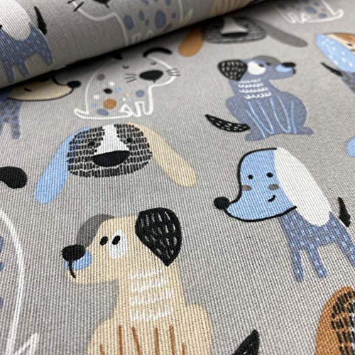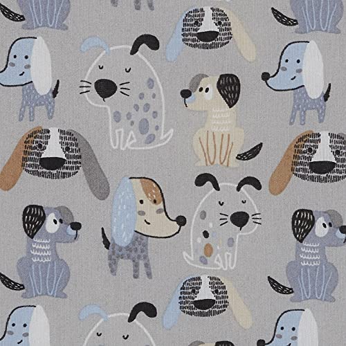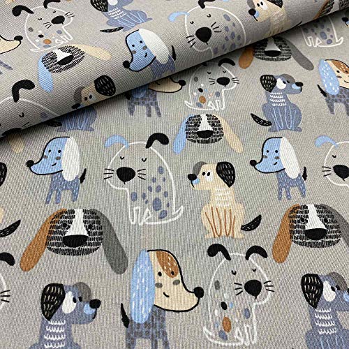 Kt KILOtela - Tessuto Canvas Stampato, Rivestire, Foderare, Divani, Tavolo, Sedia, Letto, Tende, Cuscini, Borse, 100 cm Lunghezza x 280 cm Altezza, Cani, Blu, Grigio, Marrone - 1 Metro