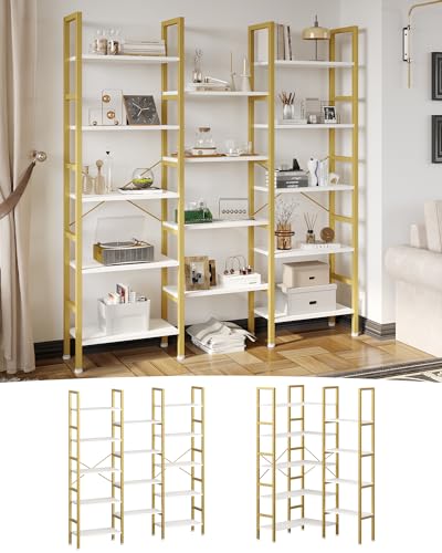KIMENICH Libreria con 14 ripiani, libreria scaffale, scaffale trasformabile, dritto, a forma di L, per soggiorno, studio, ufficio, 166 x 152 x 30 cm (bianco)