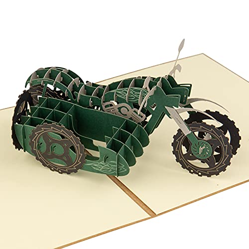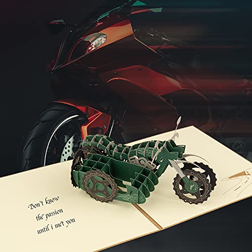 KIMI-HOSI Biglietto Auguri Pop up 3D con Busta Cartolina D'auguri Moto Cartolina D'auguri Festa del Papà Biglietto D'auguri Moto Militare Retrò per Compleanno Matrimonio San Valentino