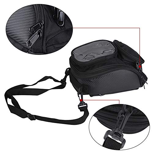 Stabile e stabile - Il potente magnete aggiornato può fissare la borsa sul serbatoio del carburante della moto, e la cintura di fissaggio supplementare con fibbia può fissare saldamente la borsa.