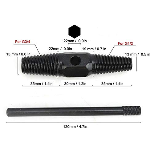 Design a doppia testa - L'estrattore di viti adotta un design a doppia testa, con filettatura a denti fini di precisione, adatto per tubo G1/2in da un lato e tubo G3/4in dall'altro lato