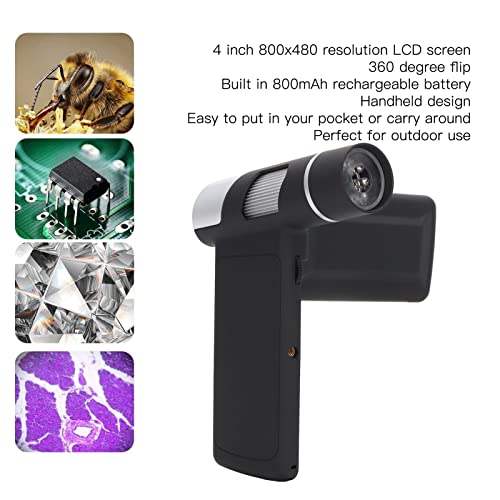 DESIGN PORTATILE - Microscopio portatile con schermo LCD da 4 pollici con risoluzione 800x480, rotazione di 360 gradi, batteria integrata da 800 mAh, design portatile, facile da mettere in tasca o da portare in giro, perfetto per l'area esterna.