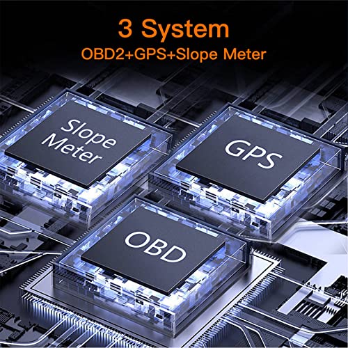 OBD2+GPS+Slope Meter: Car HUD ha un potente chip e un sensore di pendenza elettronico, che ti consente di conoscere l'inclinazione del veicolo e l'angolo di salita e discesa in tempo reale. Comprese nuove funzioni come temperatura esterna, latitudine e longitudine, settimana, angolo di rollio e angolo di elevazione.