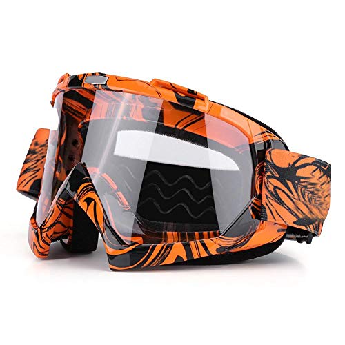 KIMISS Moto Motocross Off Road Dirt Bike Occhiali da corsa Occhiali Protezione per gli occhi(Montatura arancione + lente trasparente)