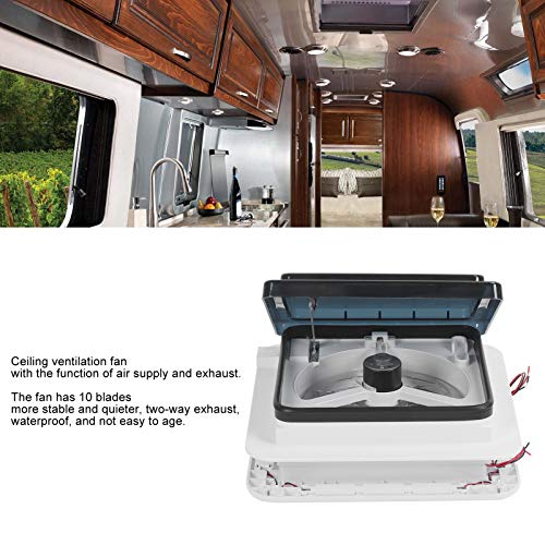 KIMISS 11 x 11 pollici 12V Presa d'aria Fan-Tastic, Prese d'aria a controllo manuale Ventilatore Ventilatore a soffitto a 2 vie con ventola a LED per camper Caravan Bus