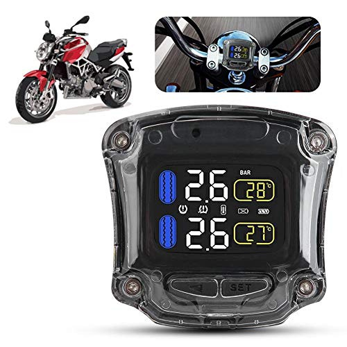 KIMISS TPMS monitor della pressione dei pneumatici, controllo della pressione dei pneumatici con 2 sensori esterni Universale per moto Monitoraggio della pressione dei pneumatici della moto