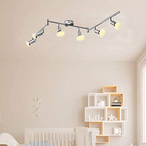 Kimjo Faretti LED da Soffitto Orientabile, Lampadario da Soffitto con 6 x 6W GU10 Bianco Caldo 2800K Pari a 54W, Plafoniera LED 36W 230V 550LM 82Ra Nickel Matte per Camera letto Salotto Cucina