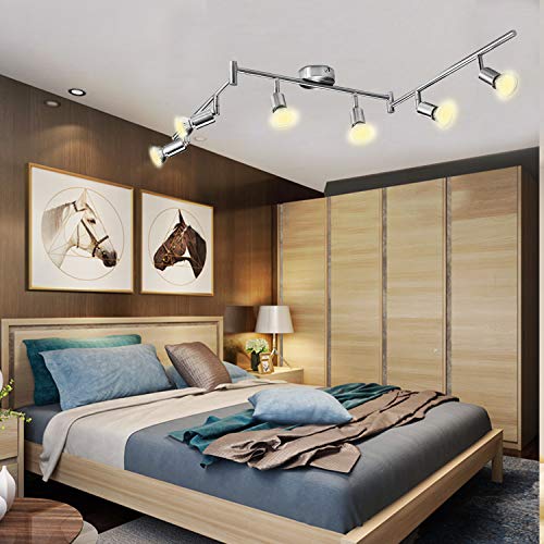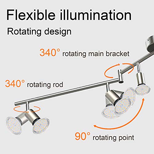 【Matt-nickel Modern Design】La Lampada da Soffitto in nichel opaco resiste alla funzione antiruggine, durabili e non arrugginiranno mai. Il polo di luce e i punti GU10 LED possono essere ruotati indipendentemente per regolare l'angolo a piacimento