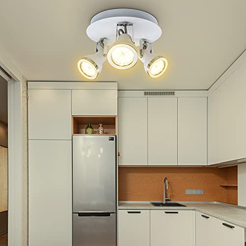 Kimjo Faretti LED da Soffitto Orientabili, GU10 Lampadario da Soffitto Rotonda, Plafoniera da Soffitto con 3 Faretti, Lampadari Moderni Bianco per Camera Salotto, Non Incluse lampadine, Max.35W