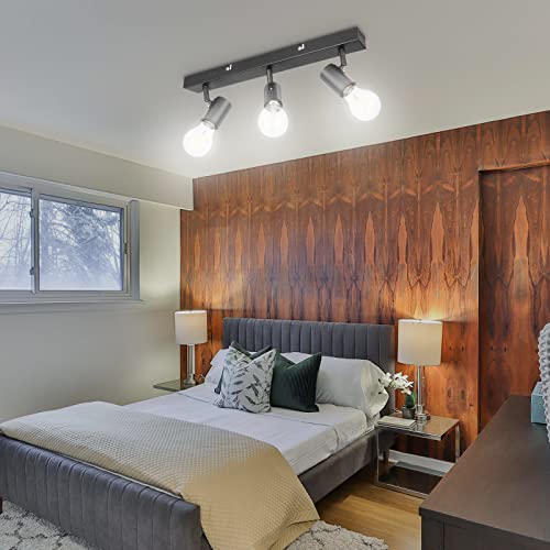 Kimjo Faretti LED da Soffitto Orientabili, Lampada da Soffitto E27 Plafoniera LED Faretti 3 Luce, Vintage Plafoniera Camera Letto, Faretti da Parete per Soggiorno Corridoio, Max. 60W Senza Lampadina