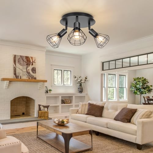 Kimjo Lampada Faretti LED da Soffitto Orientabili - Cucina Faretti da Soffitto E14 Lampadario Faretti da Parete Nero - Plafoniera LED Faretto 3 Luce - Cameretta Soggiorno Senza Lampadina