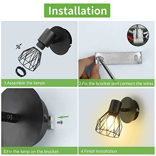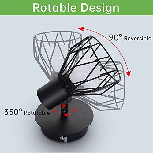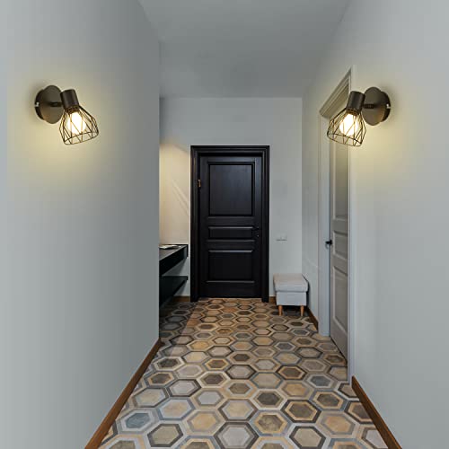 【Applique vintage】Faretto led interno dal design retrò, unico paralume in rete nera opaca, non facile da sbiadire. La base è in ferro, resistente e durevole. Adatto per l'illuminazione di interni in stile industriale, non solo garantisce una buona luce, ma dona anche un tocco di moda alla tua stanza