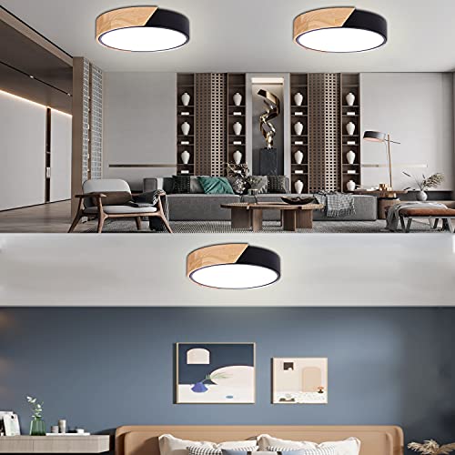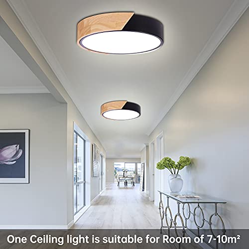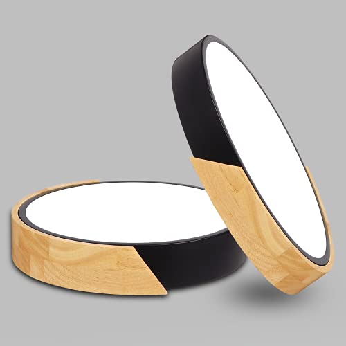 Kimjo Plafoniera a Soffitto LED 24W, 2400LM Legno Lampada da Soffitto LED Rotondo, Bianco Freddo 6000K Plafoniera LED Soffitto Moderna Ø30CM Plafoniere per Camera da letto Soggiorno Corridoio, 2 Pezzi