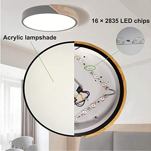 【Risparmio energetico】 Questa lampada da soffitto in legno con sorgente luminosa a LED e paralume in acrilico ha una luce morbida, nessun riflesso, nessuna interferenza ad alta frequenza, nessuna luce stroboscopica, non dimmerabile. La plafoniera 24W LED equivale a una lampada alogena da 150W, che può ridurre il costo dell'elettricità di oltre l'80%.