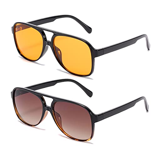 Kimorn Occhiali Da Sole Per Donna Uomo Classico Vintage Cornice Grande Lenti Gialle Retro Anni 70 Sfumature K1017 (Giallo Tartaruga)