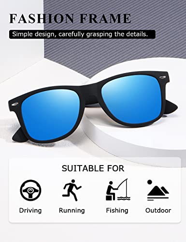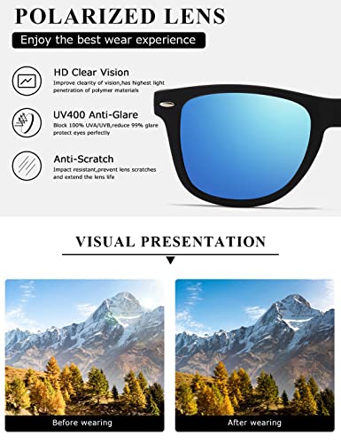 Kimorn Polarizzate Occhiali Da Sole Classico Unisex Corno In Rotazione Anni Retro AE0300 (Nero&Azzurro, 52)