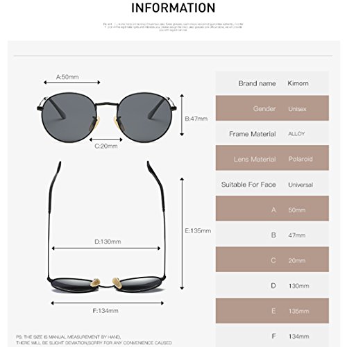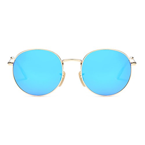 Kimorn Polarizzate Occhiali da sole Unisex Classico Rotondi Metallo Telaio Bicchieri K0556 (Oro&Blu)