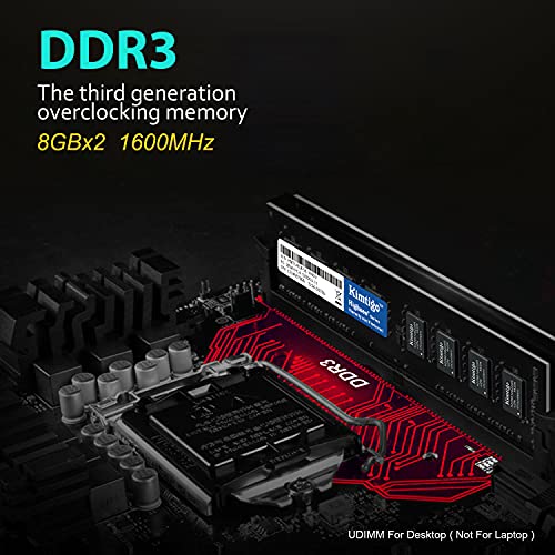 Kimtigo DDR3 8GBx2 1600 MHz UDIMM 208 Pin PC Computer Desktop Memoria Unbuffered Non-ECC Modulo Ram Aggiornamento PC4-21300 CL19 1.5V (1600MHz, DRR3 8GX2)
