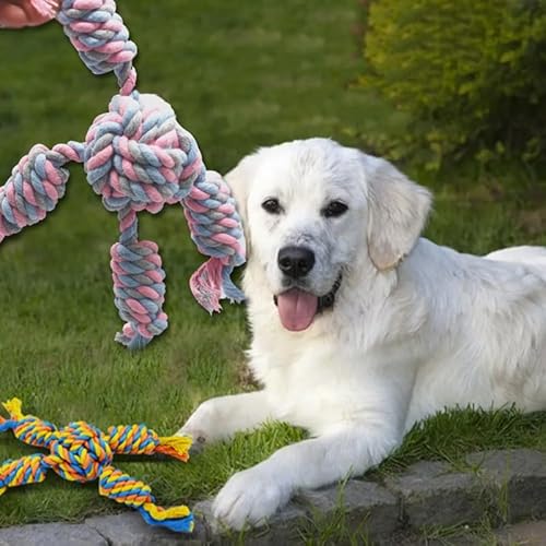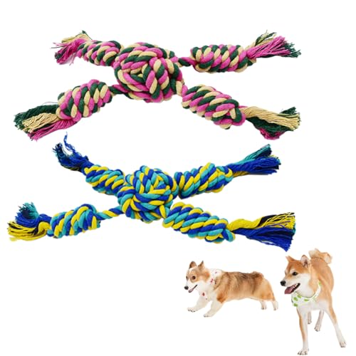 Giocattoli per Cani: Due corde di cotone lunghe 30 cm, a forma di X, robuste e resistenti, adatte a cani di piccola e media taglia, materiale in cotone sicuro e non tossico, con strato di cucito e nodi stretti, non facile da rompere come altri giocattoli per cani.